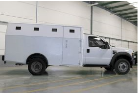 Ford F550 Bus includes full vehicle armoring with certified steel and design to resist external ballistic treats from any angle, OEM components such as suspension and brake system are fully upgraded to support full weight of armor without compromising the vehicle’s performance. The high capacity wheel and tire assembly comprise of built-in run-flats and bead lock systems. With a high payload capacity Ford F550 is ideal for transporting passengers in hostile environment . The vehicle is available with fully customized interior based on customer specifications.