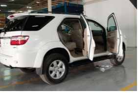 Armored Toyota Fortuner includes full vehicle armoring with certified steel and design to resist external ballistic threats from any angle, OEM components such as suspension and brake system are fully upgraded to support full weight of armor without compromising the vehicle’s performance. The high capacity wheel and tire assembly comprise of built-in run-flats and bead lock systems. In addition to the left hand drive Toyota Fortuner
