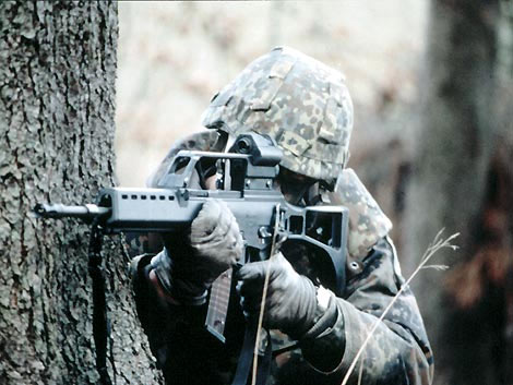 G36 is a 5.56X45 mm assault rifle, designed in Germany by Heckler and Koch in the early 90s. Designed to replace the G3, G36 is a gas operated assault rifle that feeds from a 30-round detachable box magazine or a 100-round C-Mag drum magazine. More robust than an AK-47, it can fire from under water or mud with good precision. However, it is less reliable than an AK-47 but it definitely makes up for it by its astounding precision.