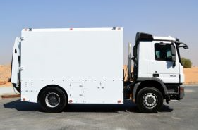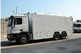 Mercedes Actros includes full vehicle armoring with certified steel and design to resist external ballistic treats from any angle, OEM components such as suspension and brake system are fully upgraded to support full weight of armor for optimal vehicle performance. The high capacity wheel and tire assembly comprise of built-in run-flats and bead lock systems. With a high payload capacity Mercedes Actros is ideal for transporting passengers or valuable cargo in hostile environment . The vehicle is available with fully customized interior based on customer specifications.