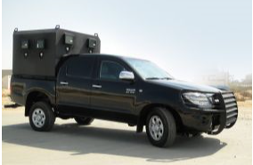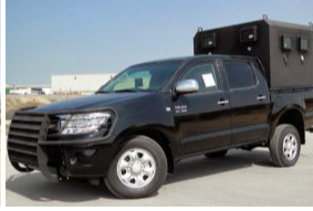 Armored Toyota Hilux Police Convoy includes full vehicle armoring with certified steel and design to resist external ballistic treats from any angle, OEM components such as suspension and brake system are fully upgraded to support full weight of armor without compromising the vehicle’s performance. The high capacity wheel and tire assembly comprise of built-in run-flats and bead lock systems